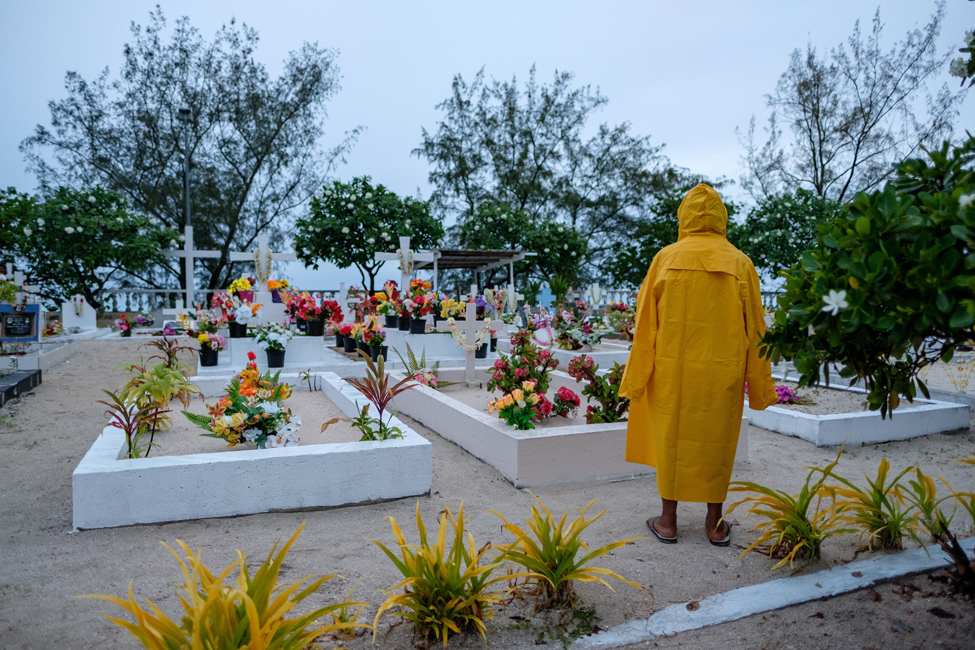 Right: Coco, vegetable farmer, worries about polluted soil on the atoll, Hao 2021
