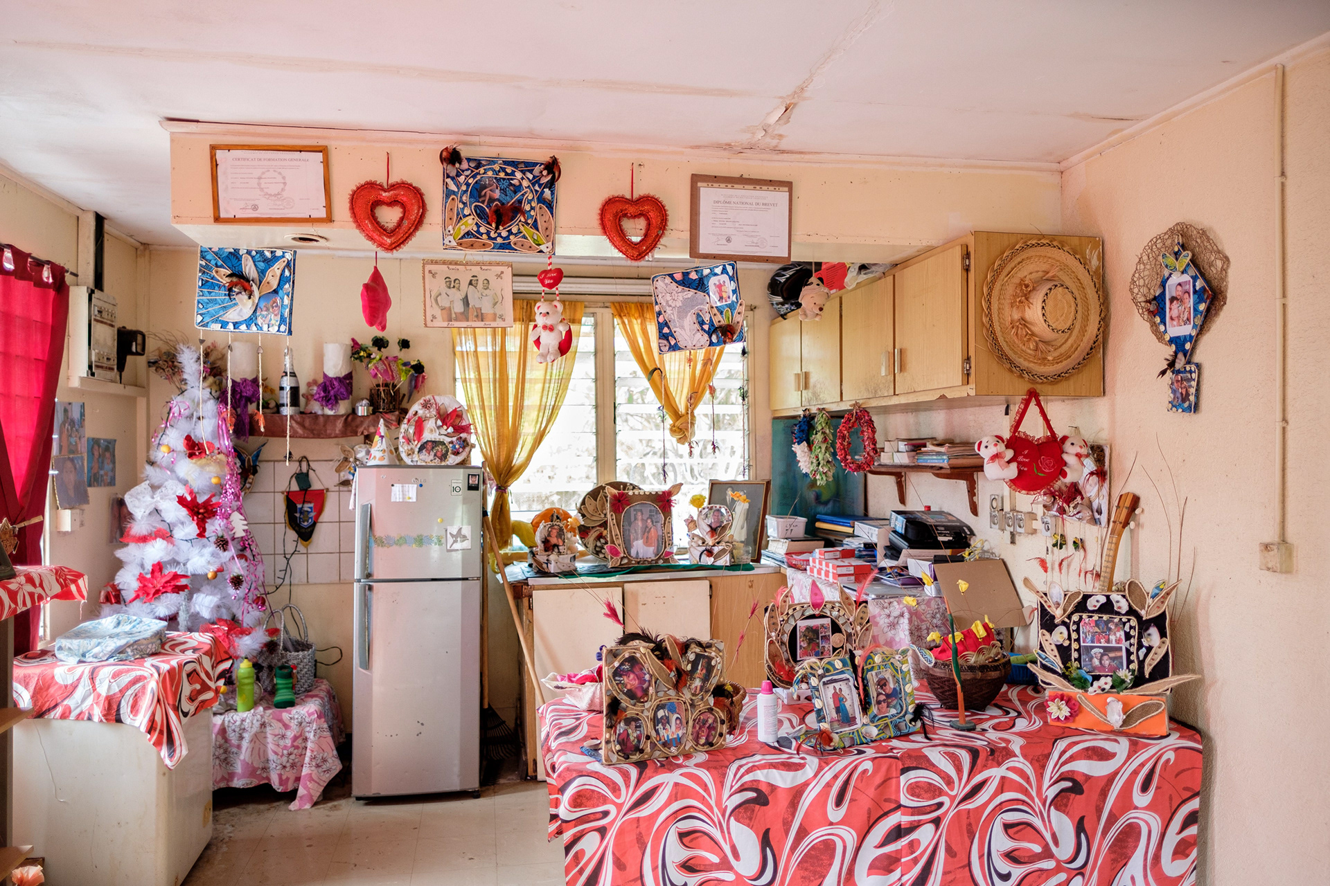 The communal "Memory Room" showing photos from Hao's former military base and French nuclear tests in French Polynesia, Hao primary school 2021